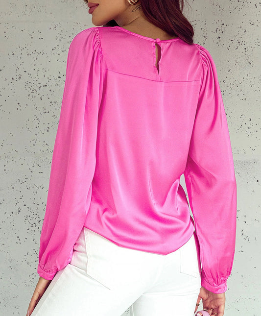 Pink Satin Long Sleeve Blouse