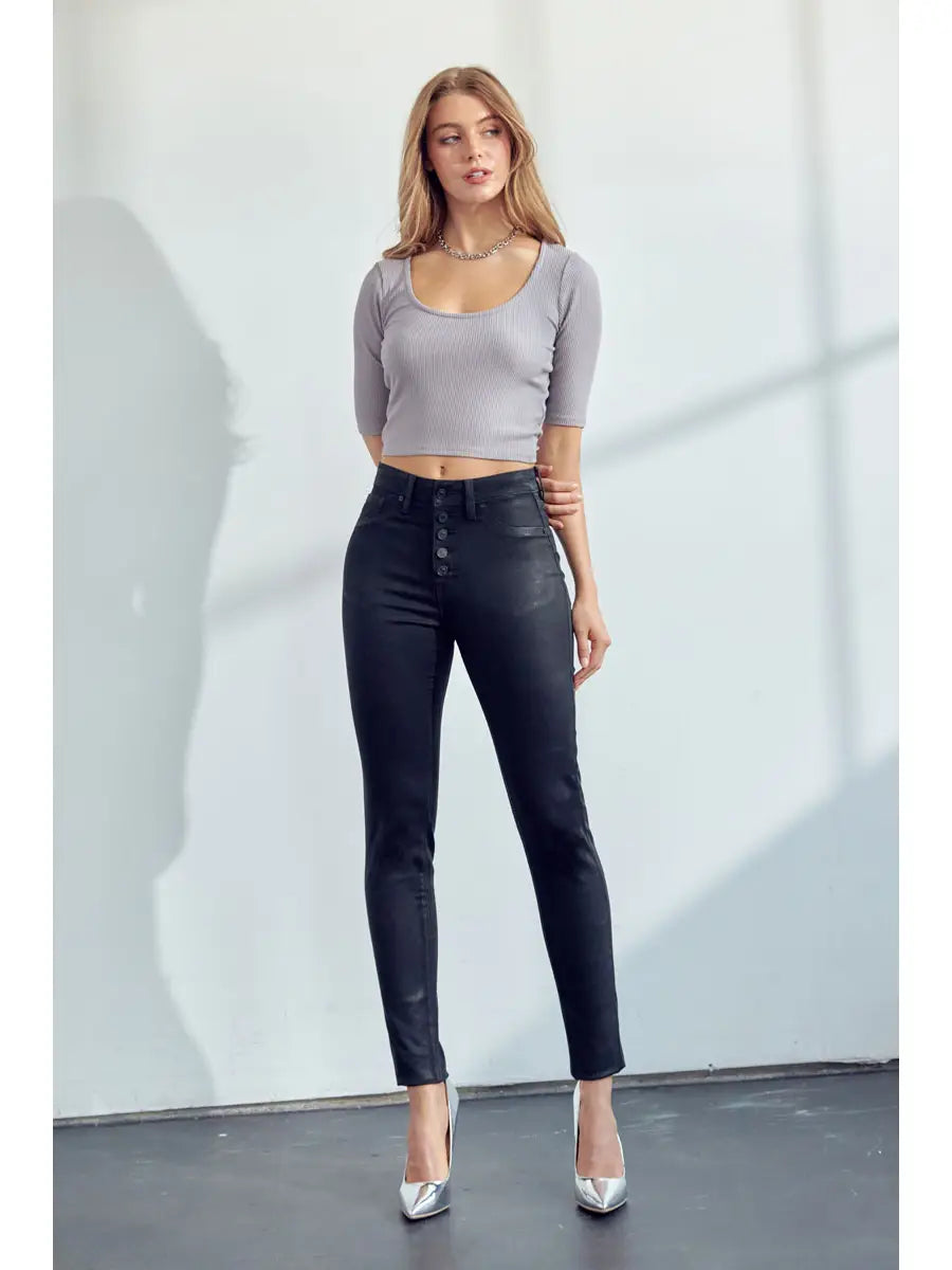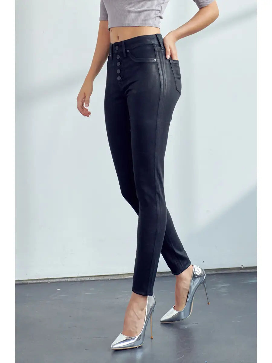 Kancan KC7113BK COATED HIGH RISE BUTTON DOWN SUPER SKINNY